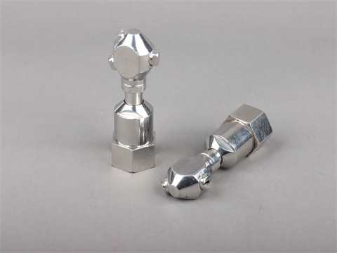 旋轉(zhuǎn)噴霧頭處有三個(gè)高壓平扇噴霧噴嘴。噴咀應(yīng)準(zhǔn)確定位,以便沖洗所有內(nèi)表面。因此,有兩種型號(hào)的噴嘴可以有效地清洗小瓶?jī)?nèi)部、iara內(nèi)部和barrel內(nèi)部。