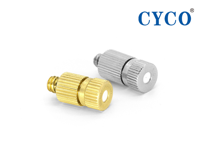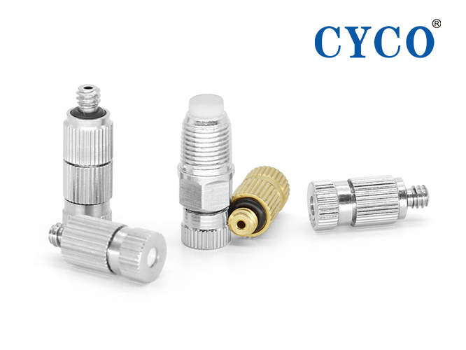2、內含有防滴漏裝置,液體在3Kg-120Kg的水壓下,高速流動,在導流葉片中形成一個離心旋渦,從噴孔中噴出極細微的空心式霧粒,使用特氟龍濾網(wǎng)或濾芯,霧粒粒徑在50μm左右
